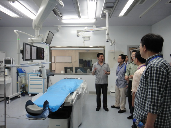 在医院领导的陪同下大家参观了急救绿色通道信息系统,该系统能保证脑血管病和颅脑创伤患者在急诊就能完成CT扫描、化验、超声、X光线等检查,使急诊病人的术前准备从过去1个多小时缩短到30分钟左右。接着参观了数字化手术信息系统,可进行术前手术方案设计、计算机模拟及手术全过程精确导航。随后,大家参观了八一脑科医院的神经科学研究所,包括解剖学实验室,神经分子实验室、电生理实验室、神经干细胞实验室等。实验室干净、整洁、有序的环境和军事化的管理给大家留下了深刻的印象。