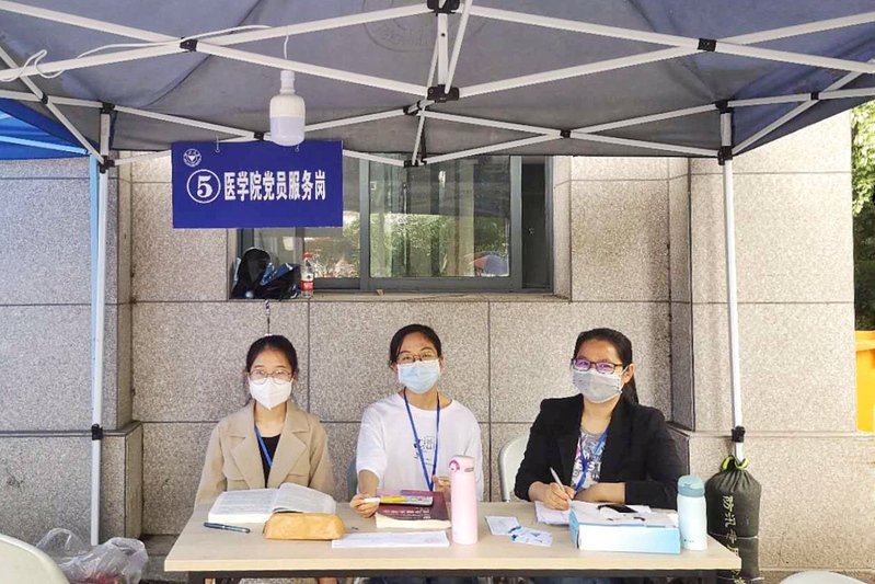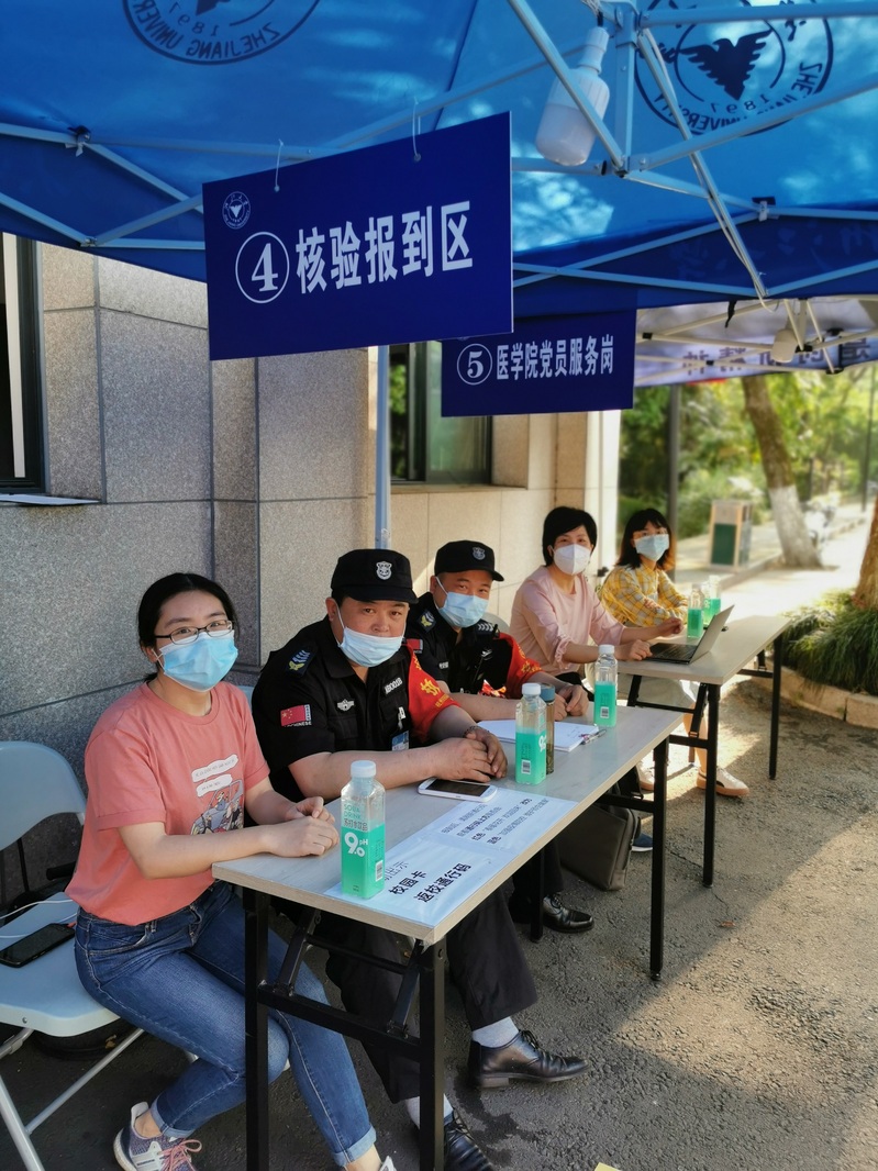 华家池畔,医学院60余名党员志愿者日夜接力,迎接2753名医学生顺利返校