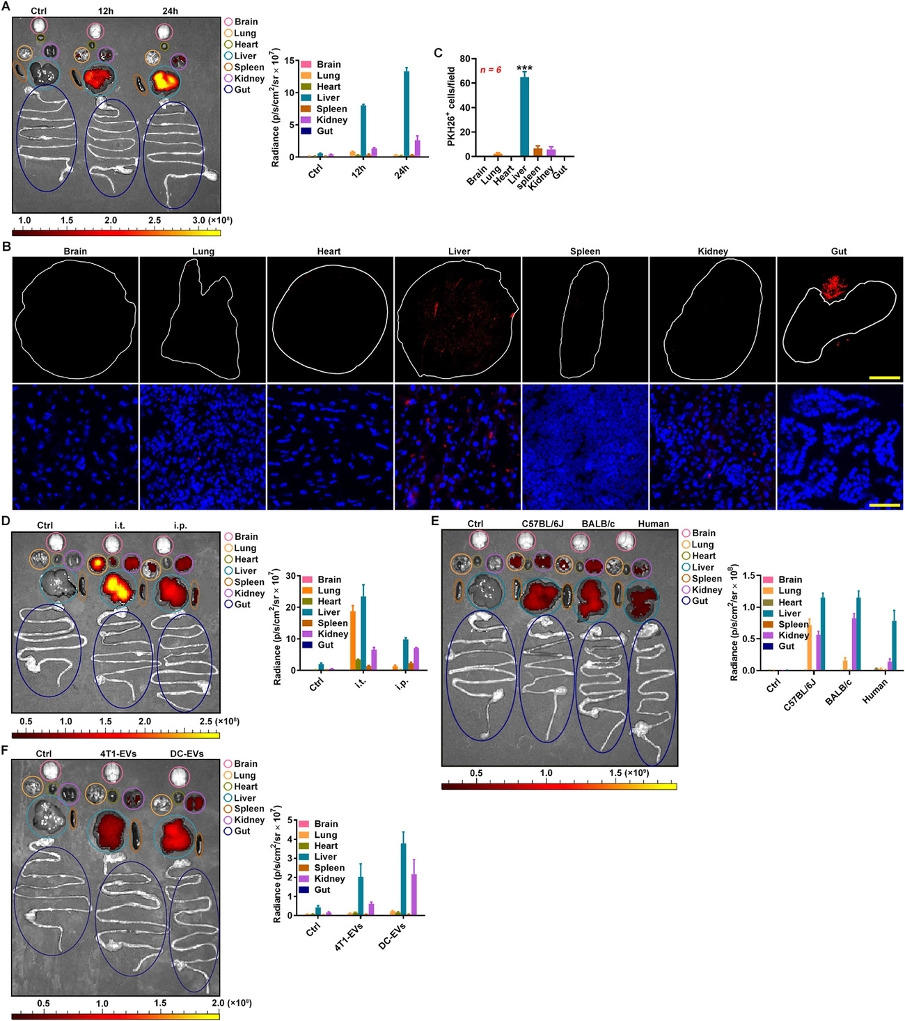 课题组在研究中发现,红细胞来源的胞外囊泡经血输回输后,可自发富集于肝脏。因此,不需要任何的人工修饰,便可实现肝脏的靶向性。通过进一步的研究,课题组发现肝脏富含C1q,通过C1q促进肝巨噬细胞对胞外囊泡的摄取,从而依赖于巨噬细胞实现胞外囊泡的肝脏富集。