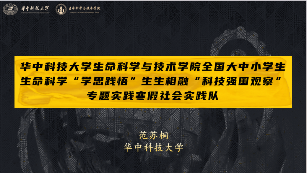 学思践悟,生生相融。华中科技大学田博文老师在介绍实践队时说到,“以生命科学为主阵地,立足科技强国观察,开展大中小学生生命科学教育实践,来为同学们搭建实践平台”。接着,范苏桐同学介绍了华中科技大学生命科学与技术学院科普实践队,团队成员拟分为多支小分队赴四川省、江西省、黑龙江省等八省12所初高中开展专题宣讲,由核心成员担任分队长与志愿者组队进行宣讲。我们的宣讲内容一共分为三个专题,分别来自学院公众号7w+阅读量生命科学专题科普素材、生命学院国际学科竞赛国际遗传工程机器设计大赛全球特等奖级大满贯项目、第18届挑战杯全国大学生课外学术科技作品竞赛主体赛国家级特等奖项目,将日常各项育人工作与社会实践有机结合起来。