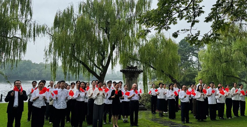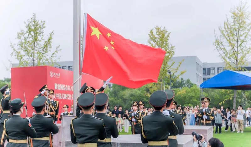 2024年10月1日清晨,浙江大学举行2024年国庆升旗仪式,鲜艳的五星红旗在七大校区同步冉冉升起。浙江大学两千余名师生齐聚紫金港校区南大门,广大师生代表同聚五星红旗下,共襄升旗盛典情,庆祝建国75周年。